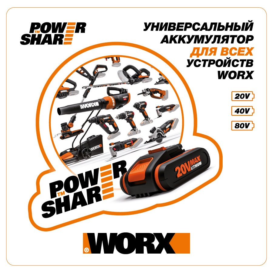 Сабельная пила аккумуляторная WORX WX508, 20В, 2хАКБ 2 А.ч. и ЗУ, сумка
