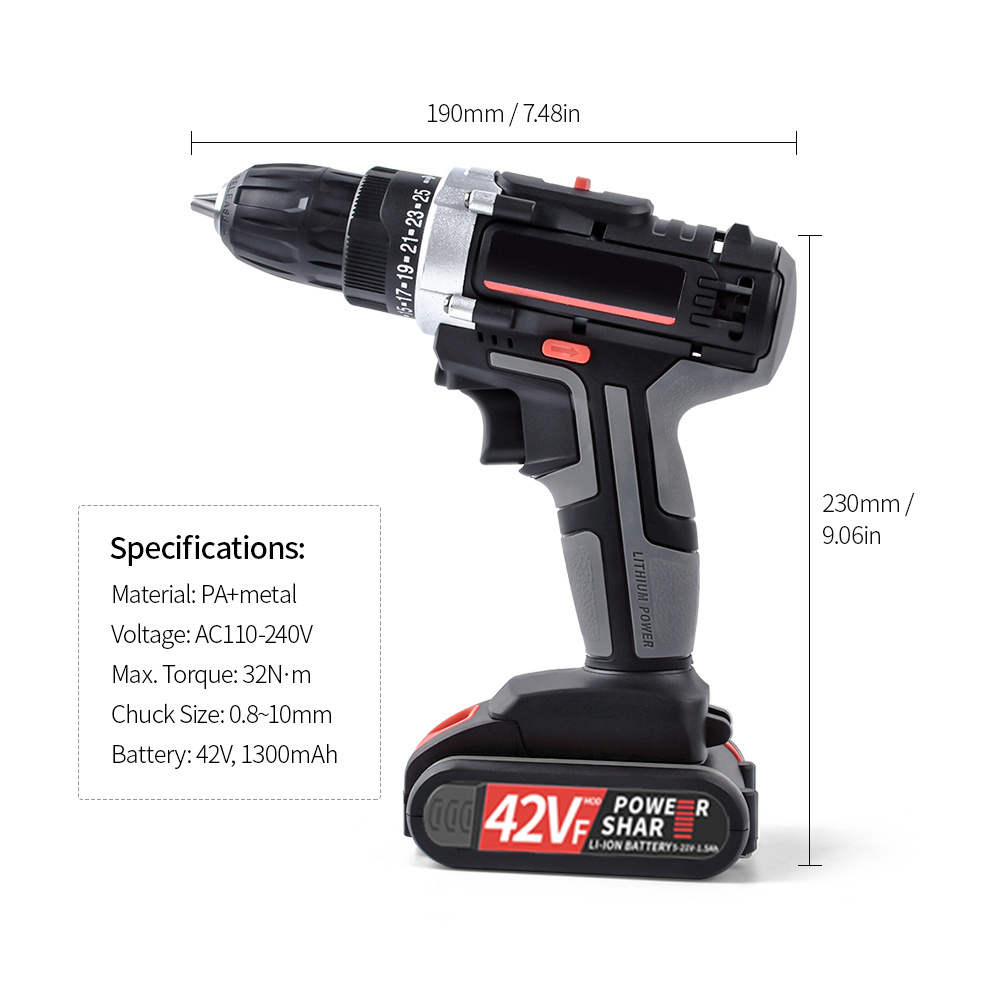 42VF Двойная Скорость Аккумуляторная Электрическая Дрель Литиевая