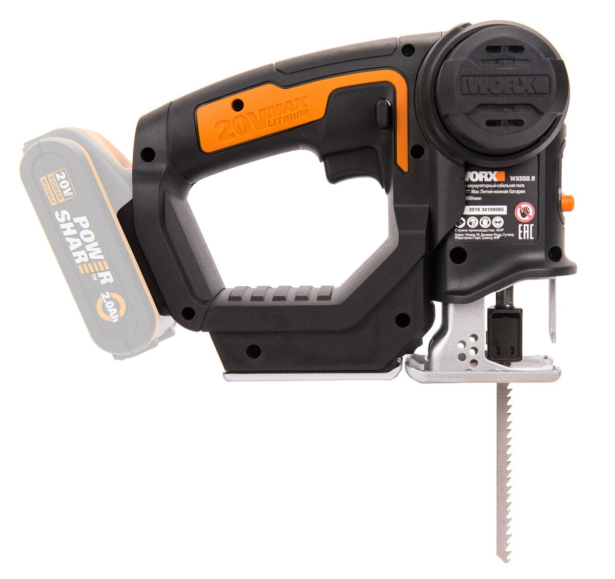 Лобзик аккумуляторный-сабельная пила WORX Axis WX550, 20В, без АКБ и ЗУ