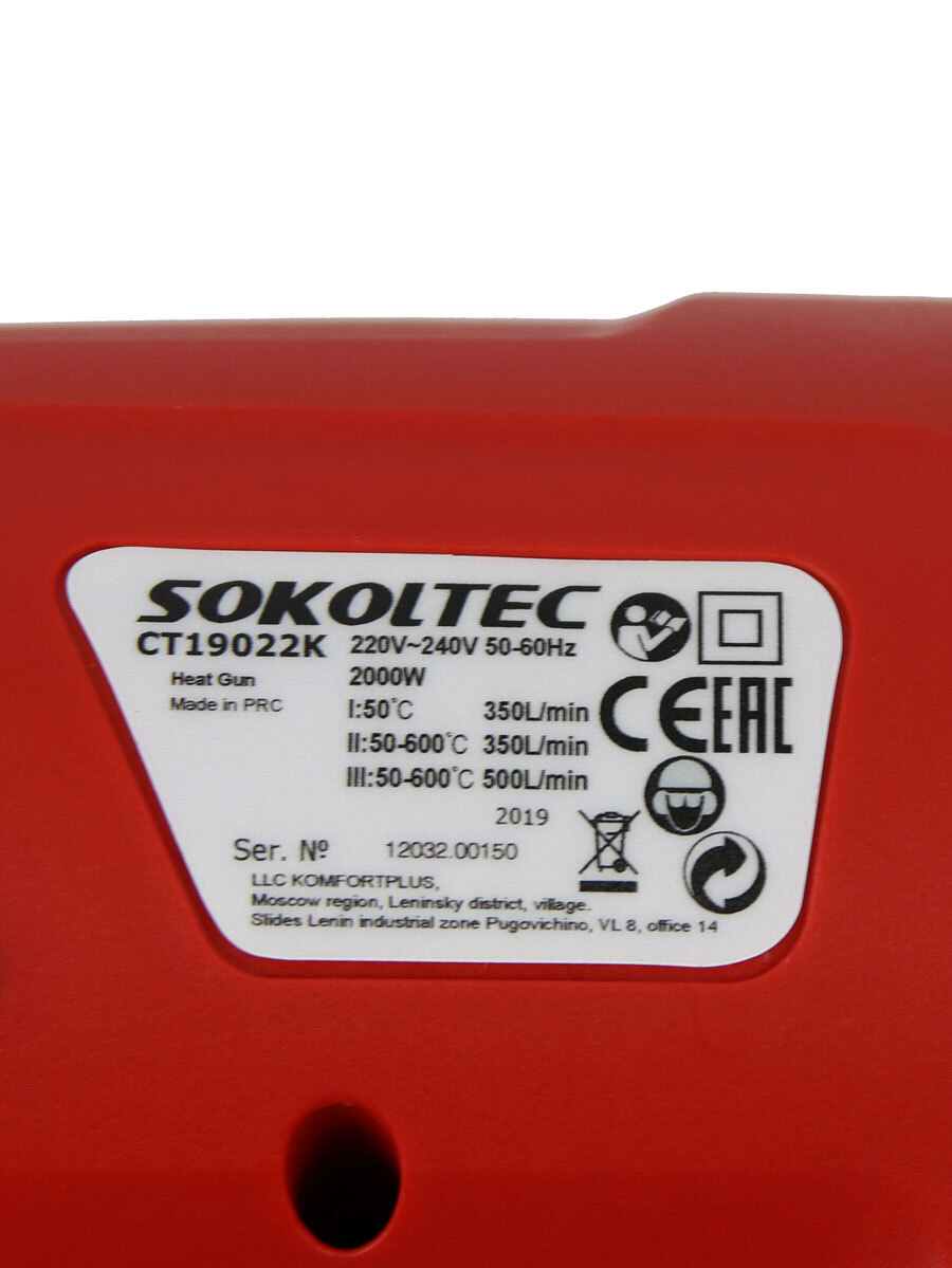 Фен строительный (2000ВТ) SOKOLTEC CT19022K