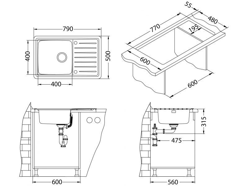 - Материал Искусственный гранит