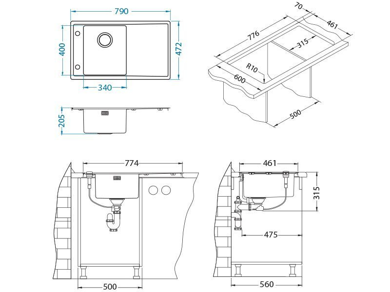 - Размеры, мм 790x472x205