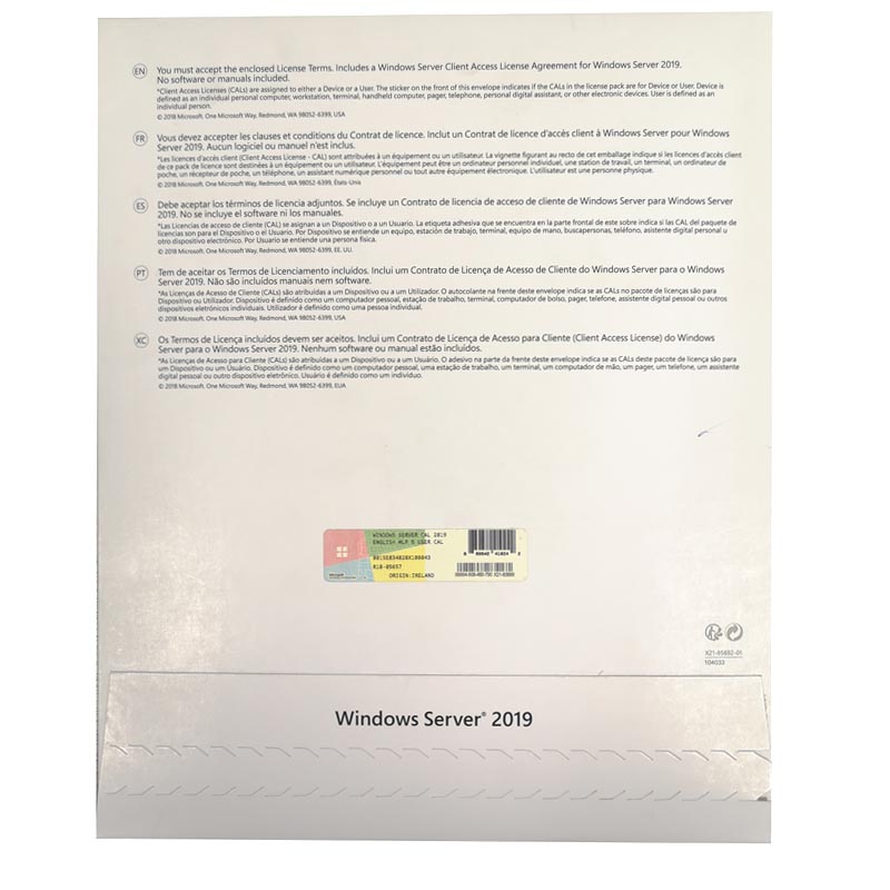 Клиентская лицензия User Microsoft, Windows Server CAL 2019, Англ., 5 шт. FPP, Бессрочно, R18-05657