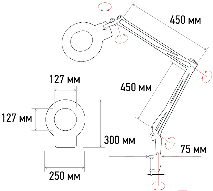 • Размещение универсальной лупы настольное