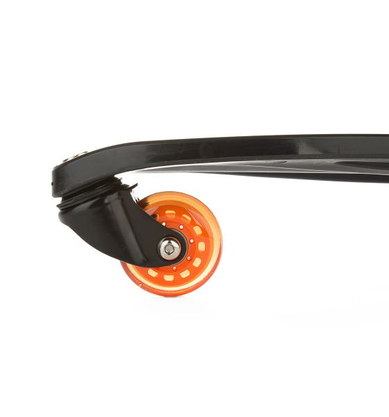 ОсобенностиПрогрессивная трехколесная конструкция проста и удобная в эксплуатации. Во время езды передняя нога устанавливается в специальную нишу, а заднюю, являющуюся толковой, ставят на крыло. Повороты обеспечиваются за счет переднего вращающегося колеса. Уникальный тормозящий механизм замедляет механизм сразу после того, как ребенок спрыгивает с платформы.
