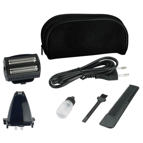 - Дополнительная информация триммер для стрижки в носу и ушах; насадка-бритва; щеточка для чистки, масло; расческа