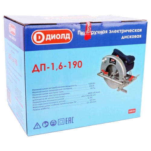 • Комплект поставки электропила ДП-1,6-190; линейка с боковой направляющей; пильный диск-установленый; щетки-2шт; ключ; патрубок; руководство по эксплуатации; упаковка