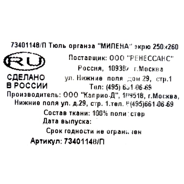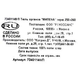 Тюль на ленте «Милена» 250x260 см цвет экрю