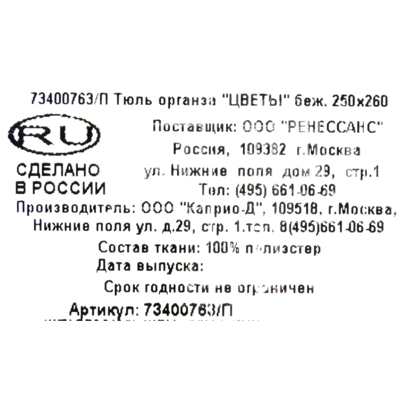 Тюль на ленте «Цветы» 250x260 см цвет бежевый