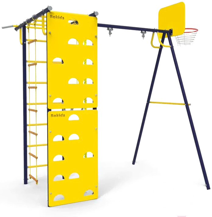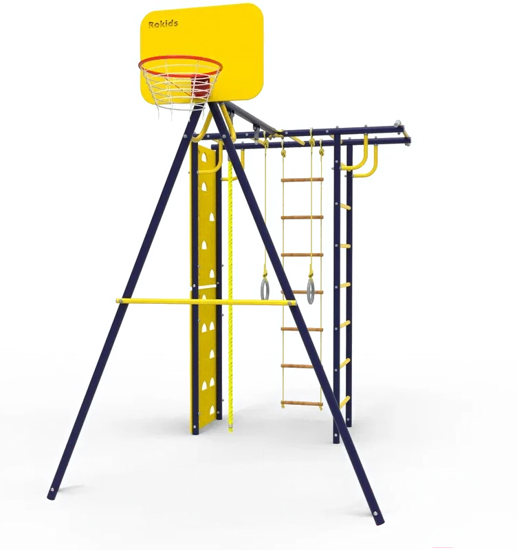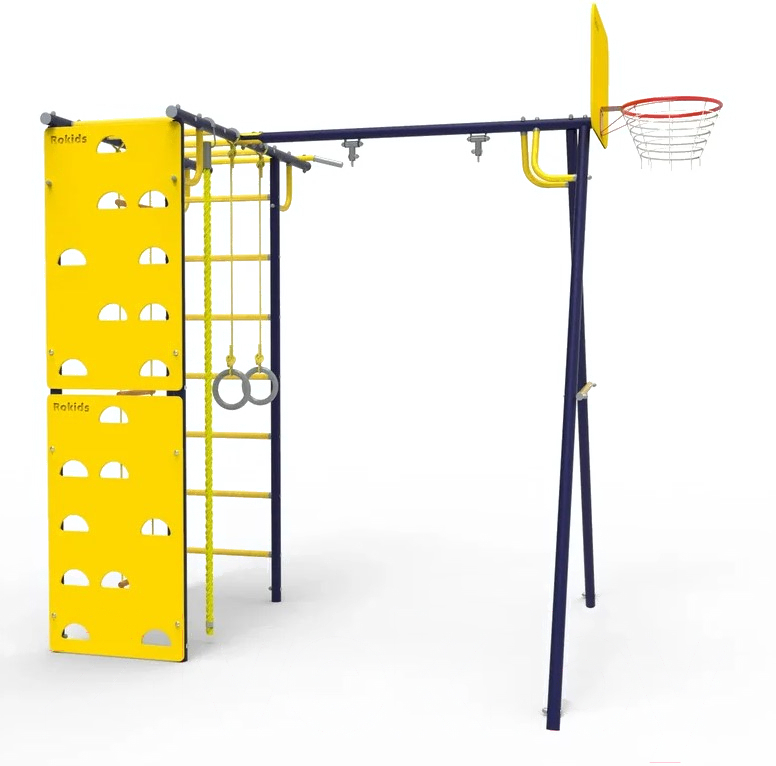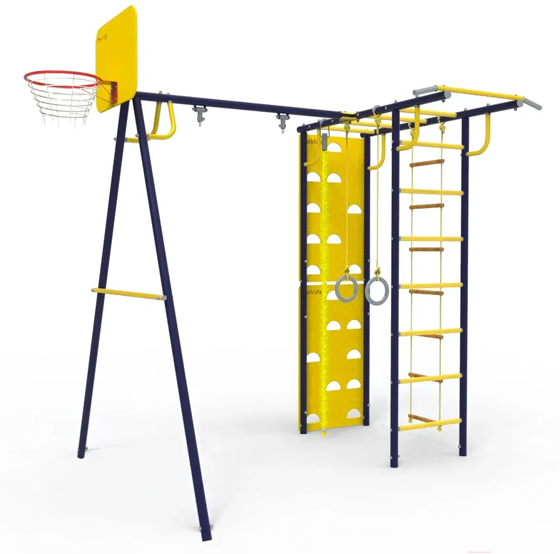 • Элементы в комплекте баскетбольная корзина, стена для лазания, веревочная лестница, турник, канат, кольца, рукоход