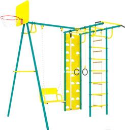 - Элементы комплекса в комплекте баскетбольная корзина, качели, стена для лазания, веревочная лестница, турник, канат, кольца, рукоход