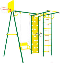 - Элементы комплекса в комплекте баскетбольная корзина, качели, стена для лазания, веревочная лестница, турник, канат, кольца, рукоход
