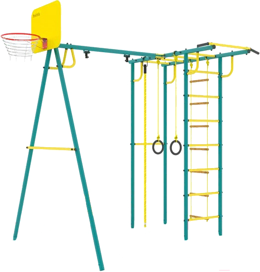 - Элементы в комплекте баскетбольная корзина, веревочная лестница, турник, канат, кольца, рукоход