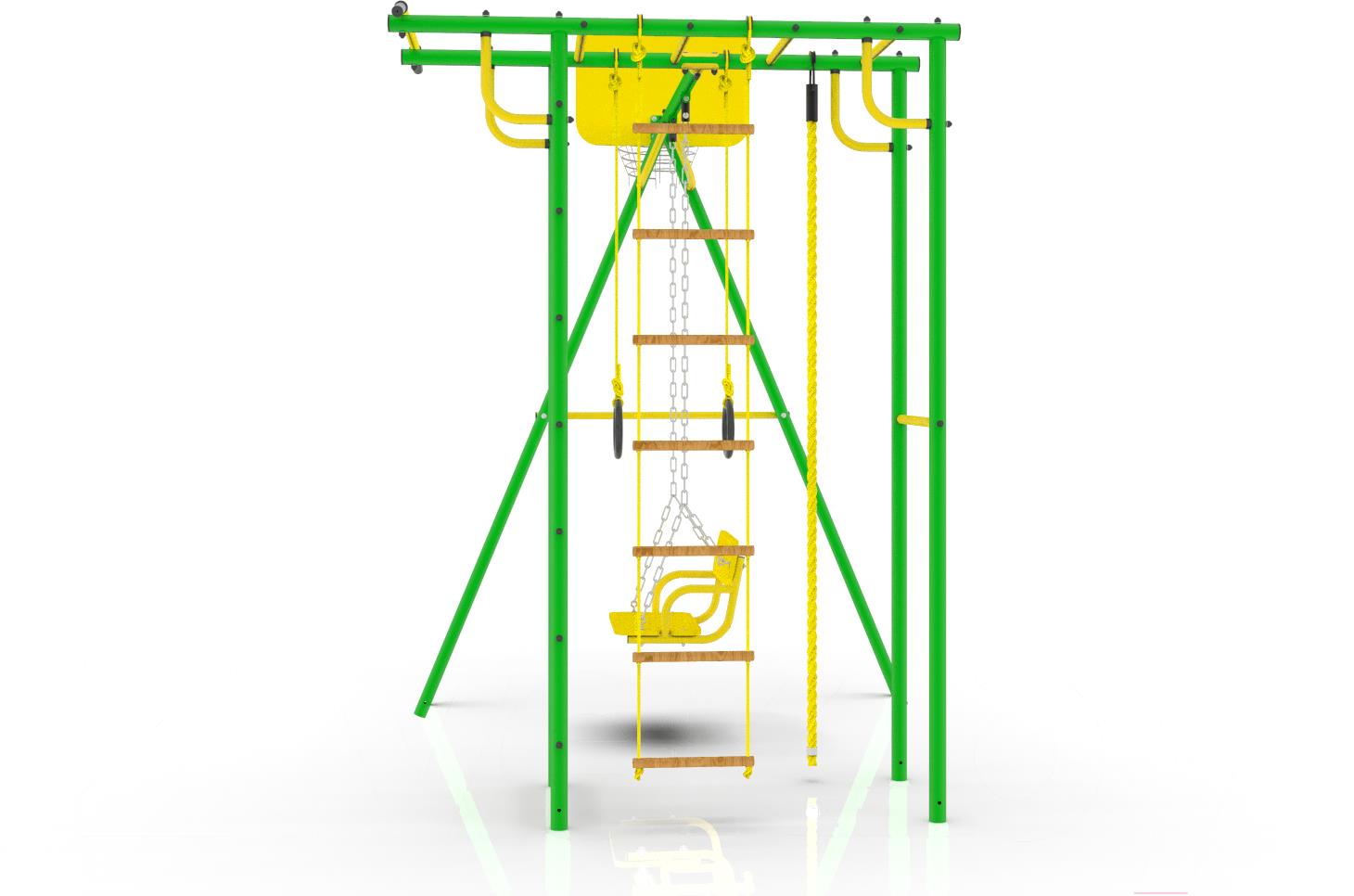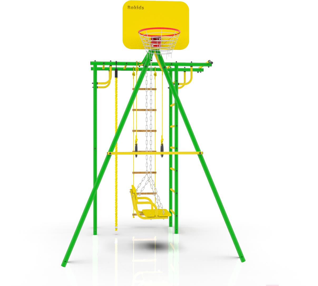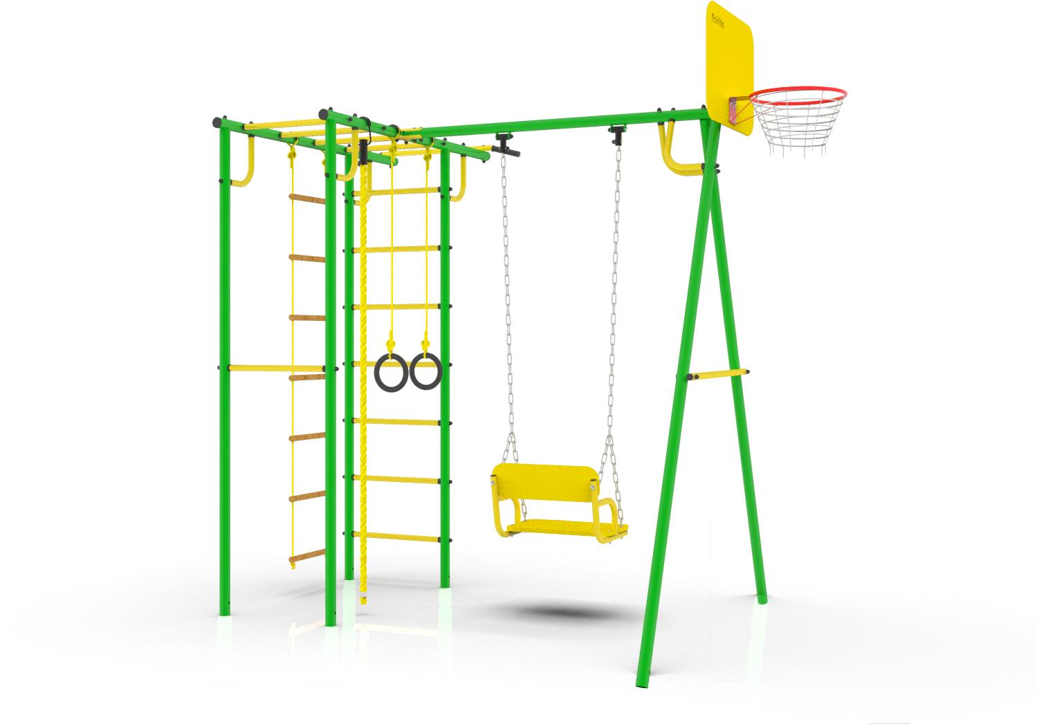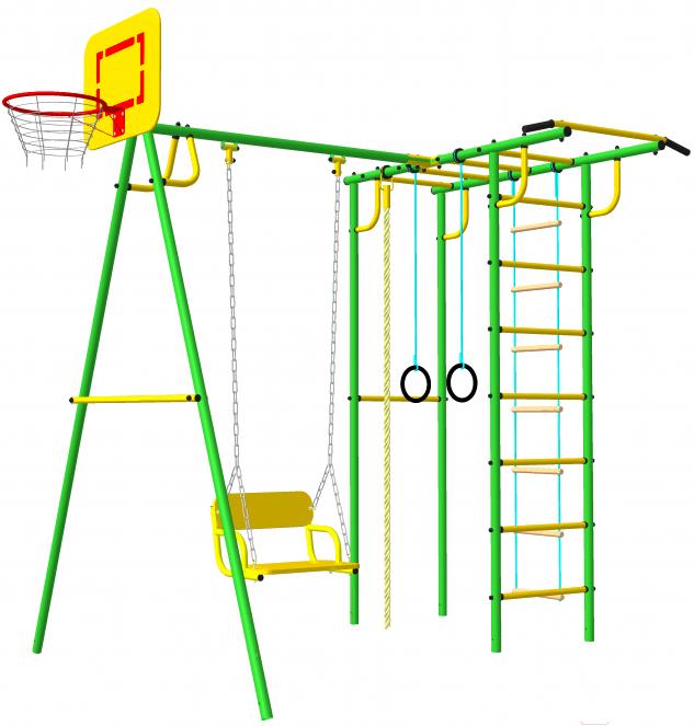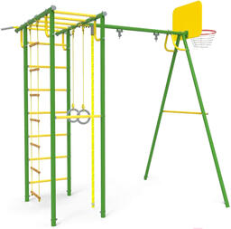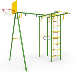 • Элементы комплекса в комплекте баскетбольная корзина, качели, веревочная лестница, турник, канат, кольца, рукоход