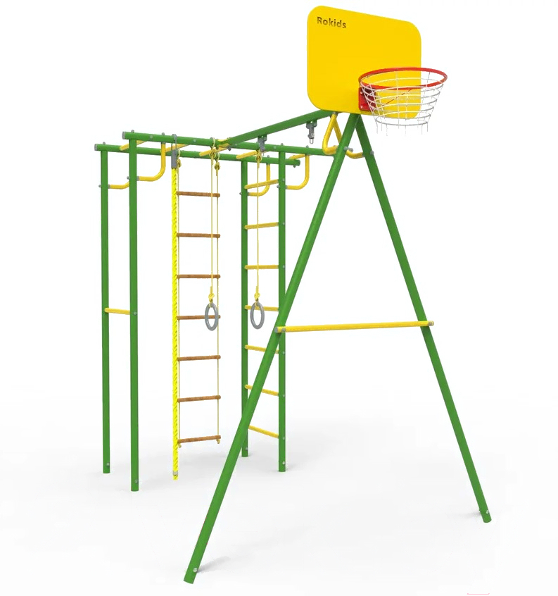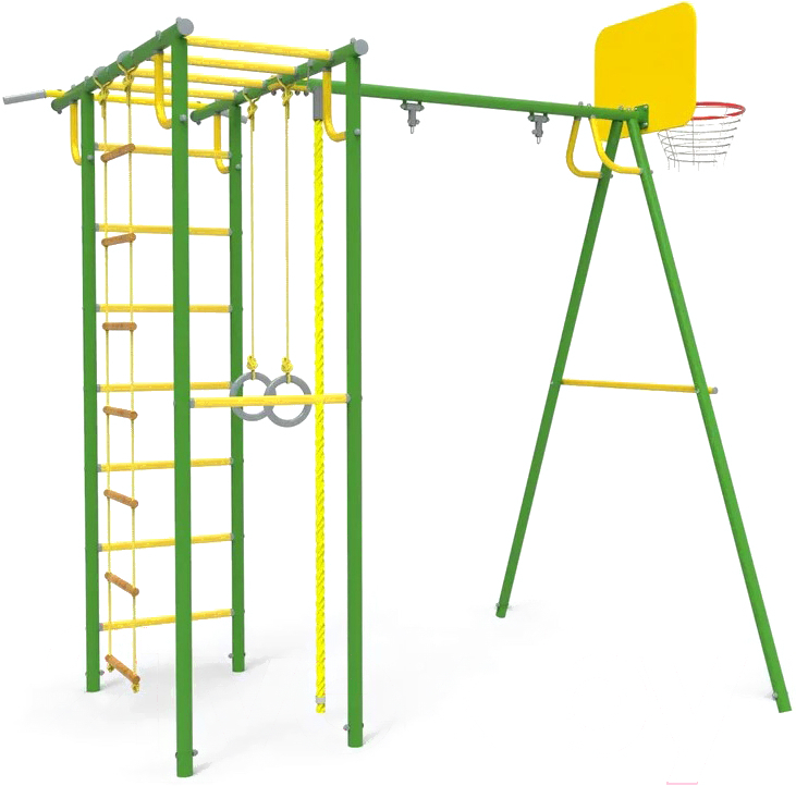• Элементы в комплекте баскетбольная корзина, веревочная лестница, турник, канат, кольца, рукоход
