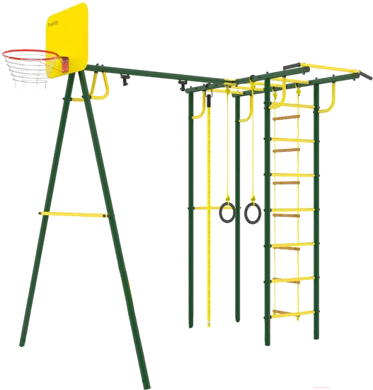 - Элементы в комплекте баскетбольная корзина, веревочная лестница, турник, канат, кольца, рукоход