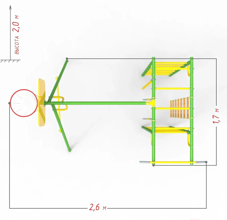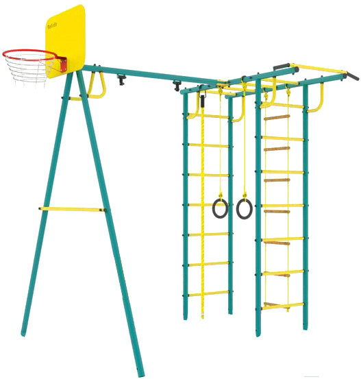 - Элементы в комплекте баскетбольная корзина, веревочная лестница, турник, канат, кольца, рукоход