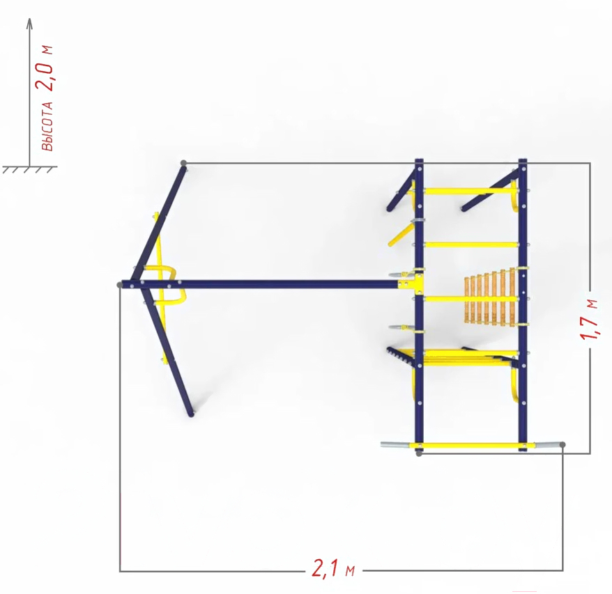 • Элементы в комплекте веревочная лестница, турник, канат, кольца, рукоход