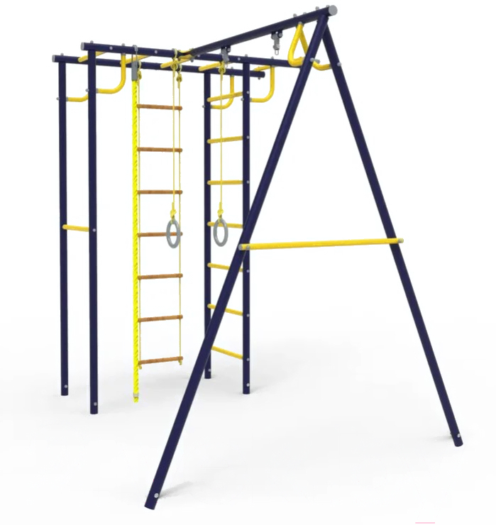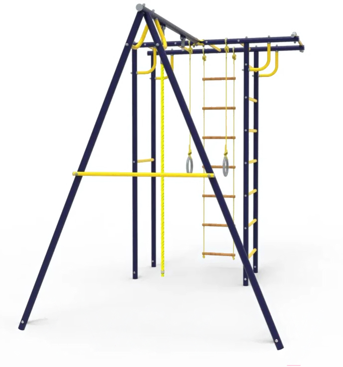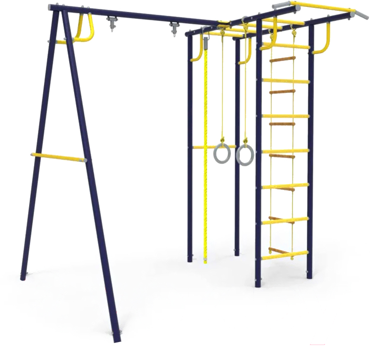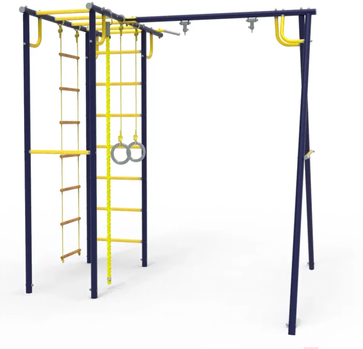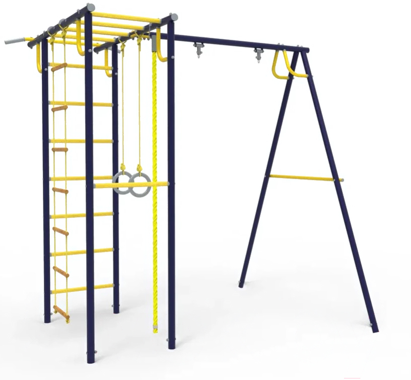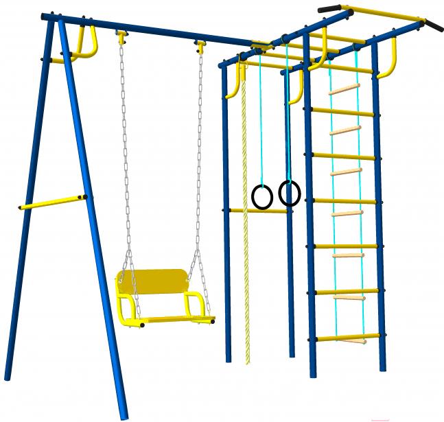 • Элементы комплекса в комплекте качели, веревочная лестница, турник, канат, кольца, рукоход