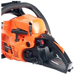 Комплект поставкишина (OREGON- звездочка на 4-х заклепках), цепь (OREGON), напильник для заточки цепи, емкость для приготовления смеси, рем. комплект стартера