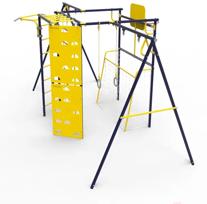 Элементы в комплектебаскетбольная корзина, стена для лазания, веревочная лестница, турник (регулируется по высоте), канат, кольца, рукоход, футбольные ворота