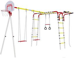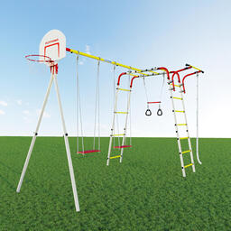 • Элементы комплекса в комплекте баскетбольная корзина, качели (фанера), турник, канат, кольца, лестница, трапеция, рукоход