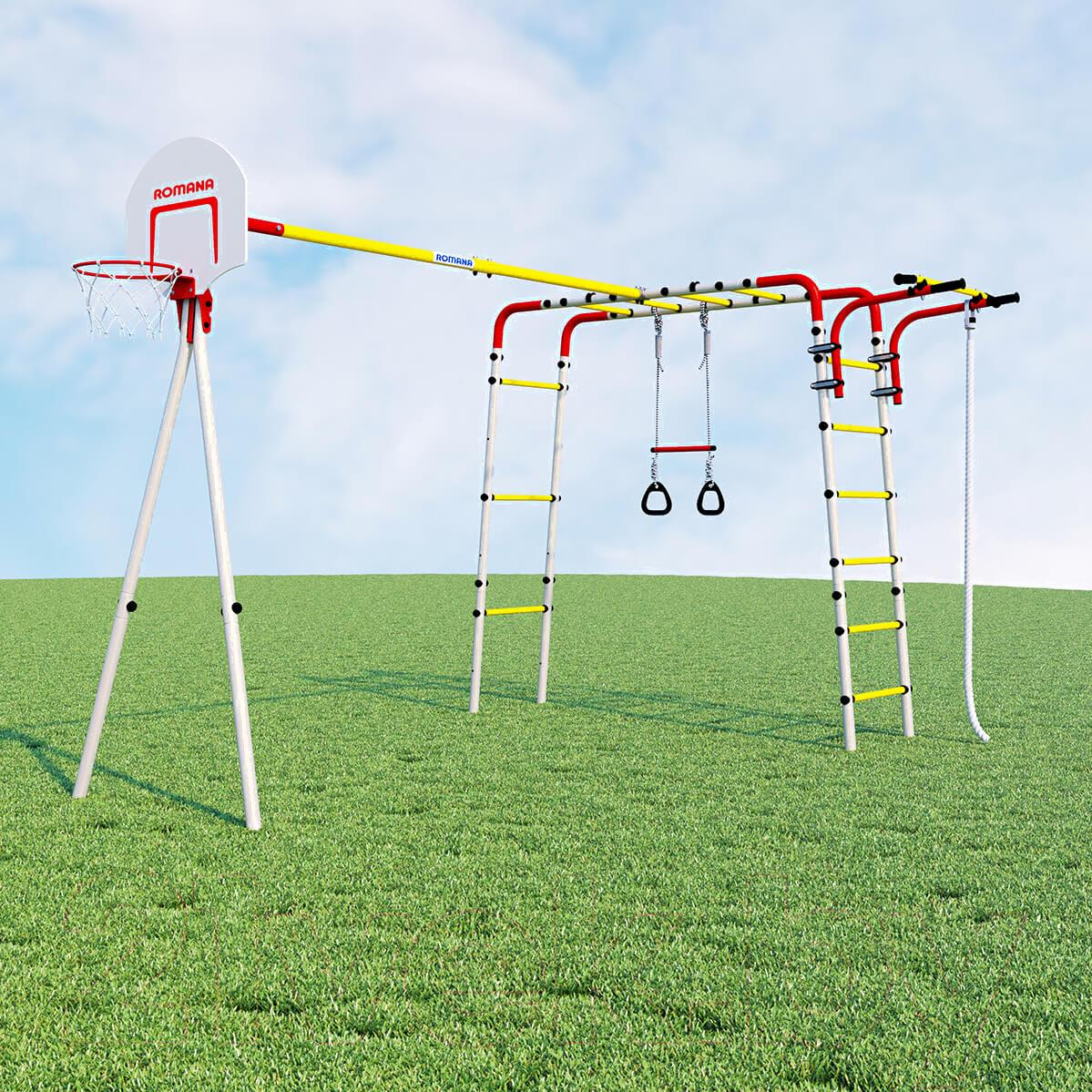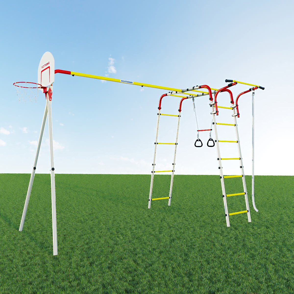 • Элементы в комплекте баскетбольная корзина, турник, канат, кольца, лестница, трапеция, рукоход
