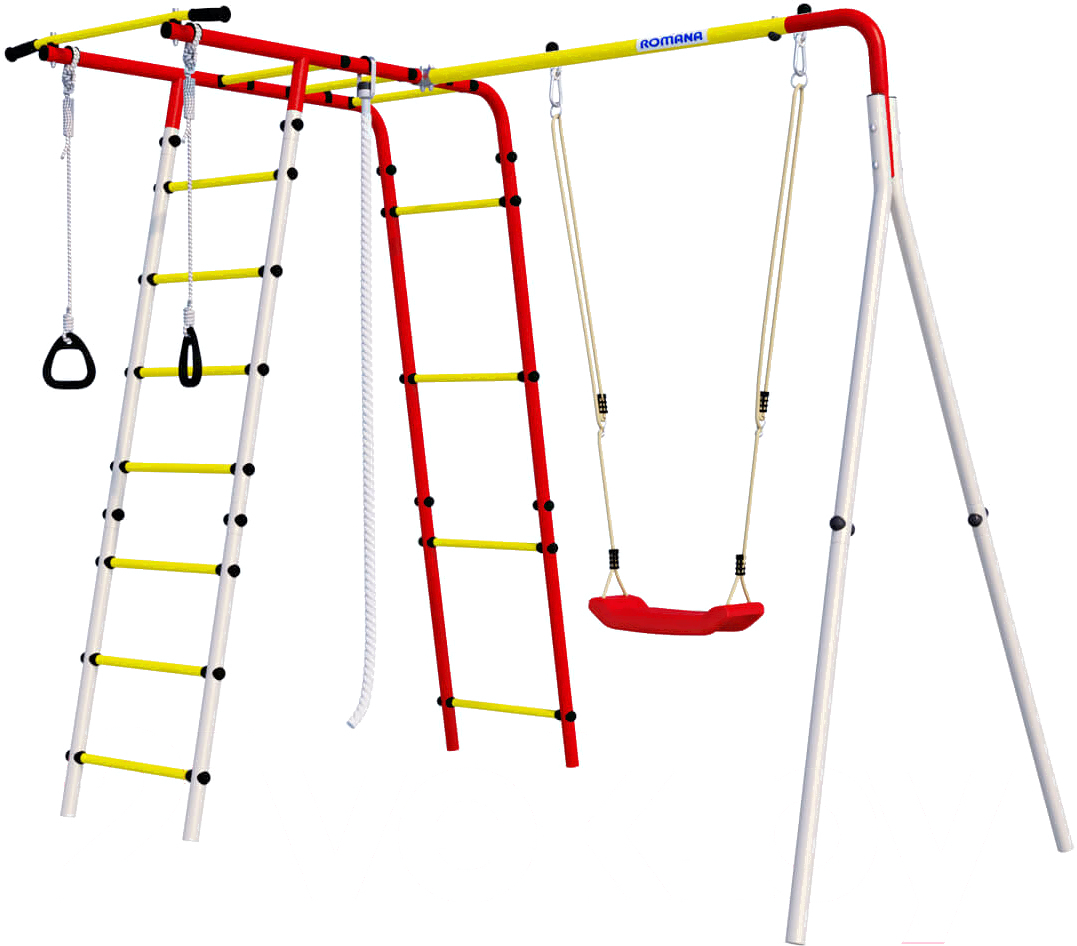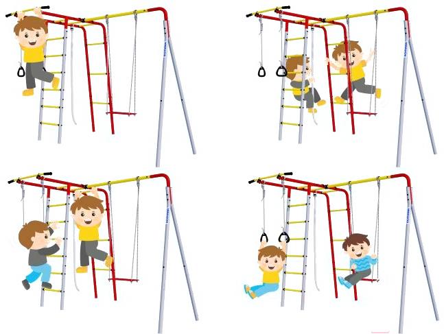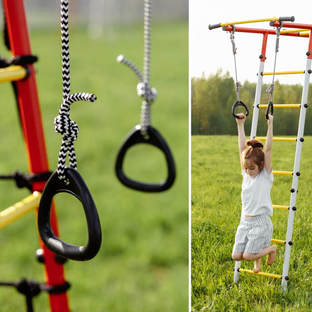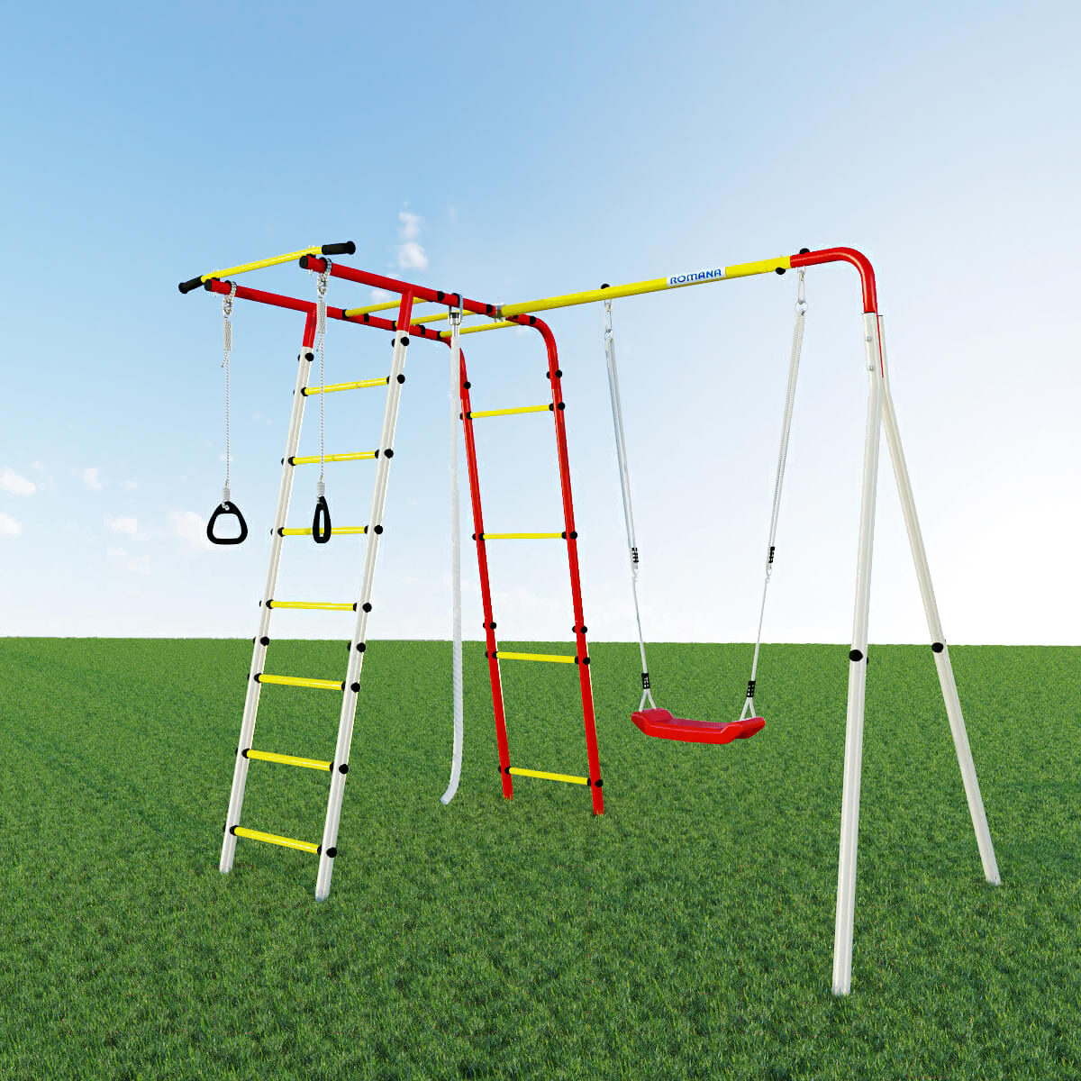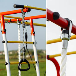 • Элементы в комплекте качели (пластик), турник, канат, кольца, лестница, рукоход