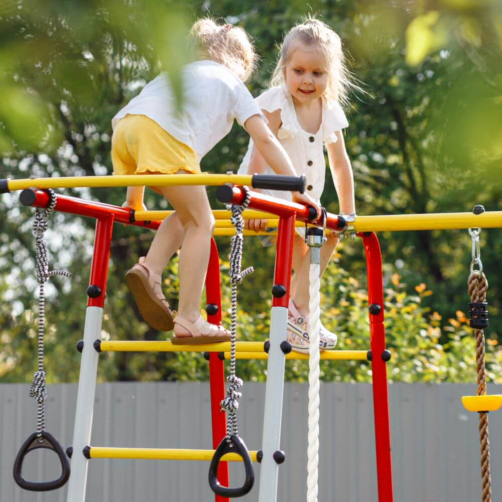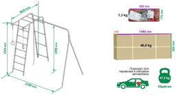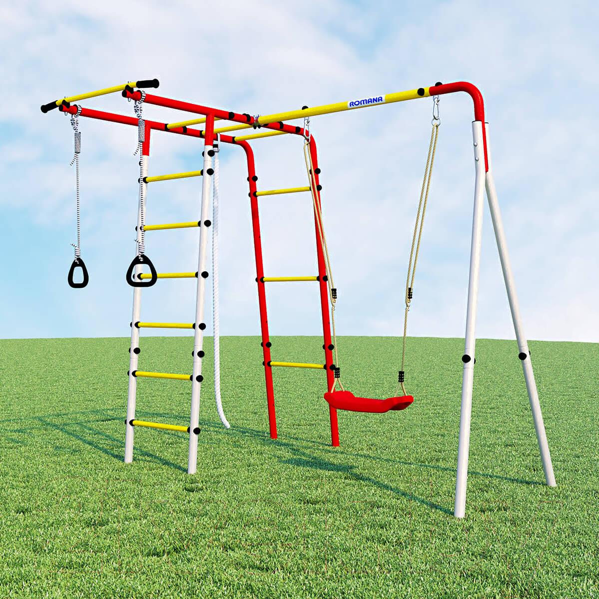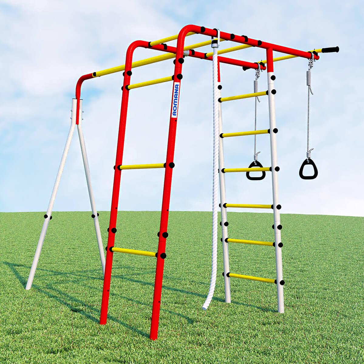 • Элементы в комплекте качели (пластик), турник, канат, кольца, лестница, рукоход