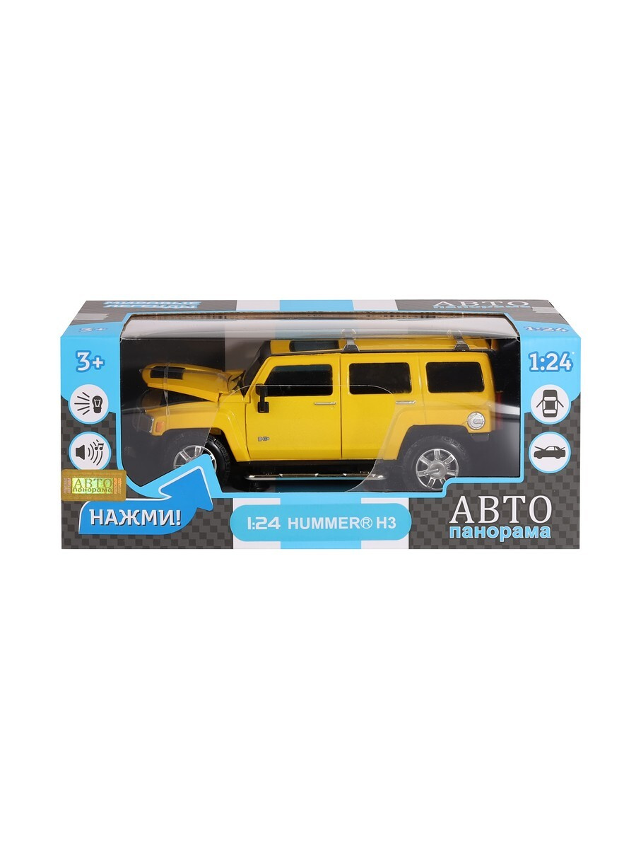 Машинка металлическая,Автопанорама, Hummer H3,1:24, открываются передние двери, капот, багажник, свет, звук, резиновые колеса