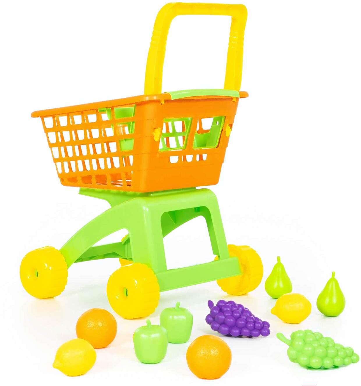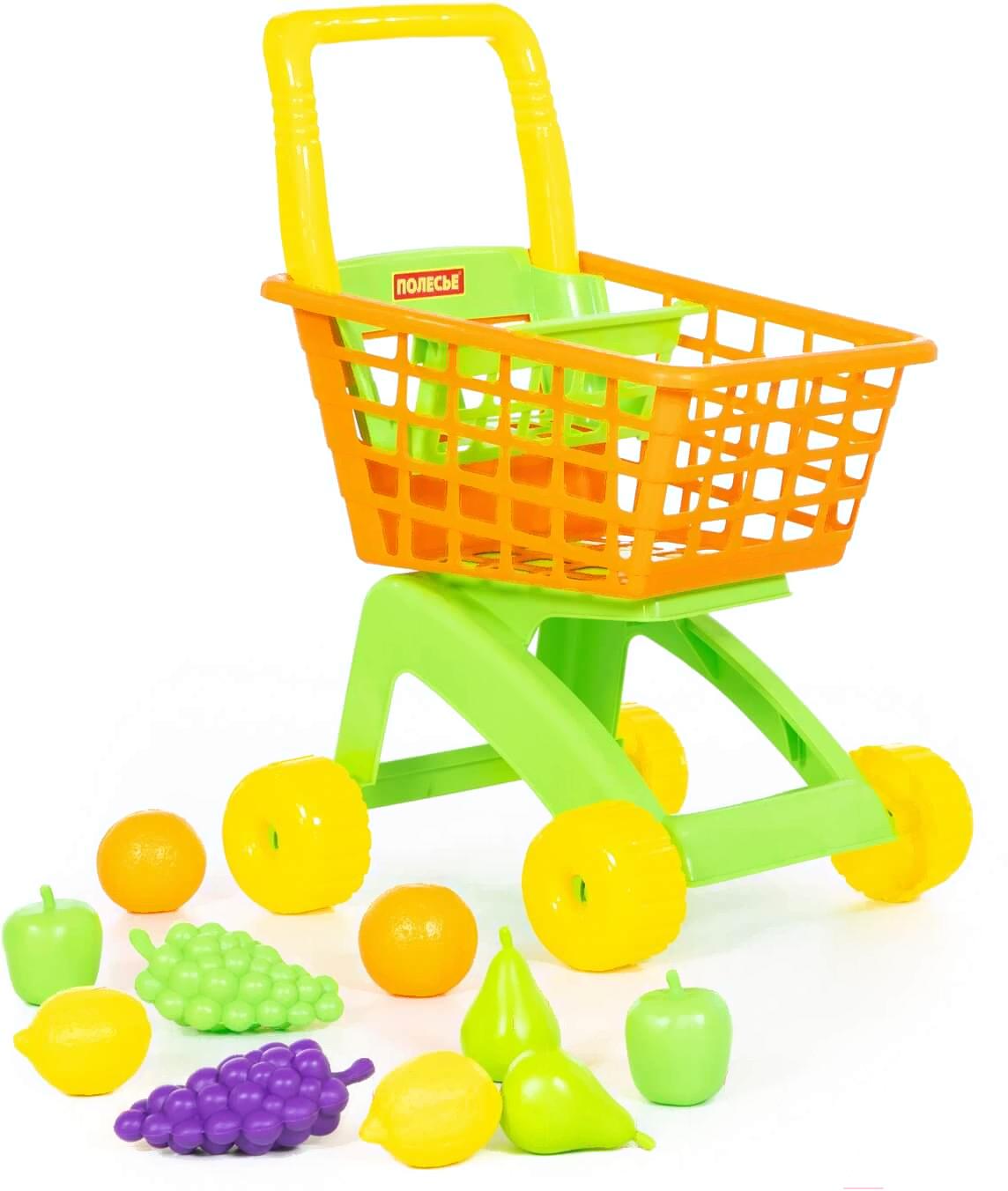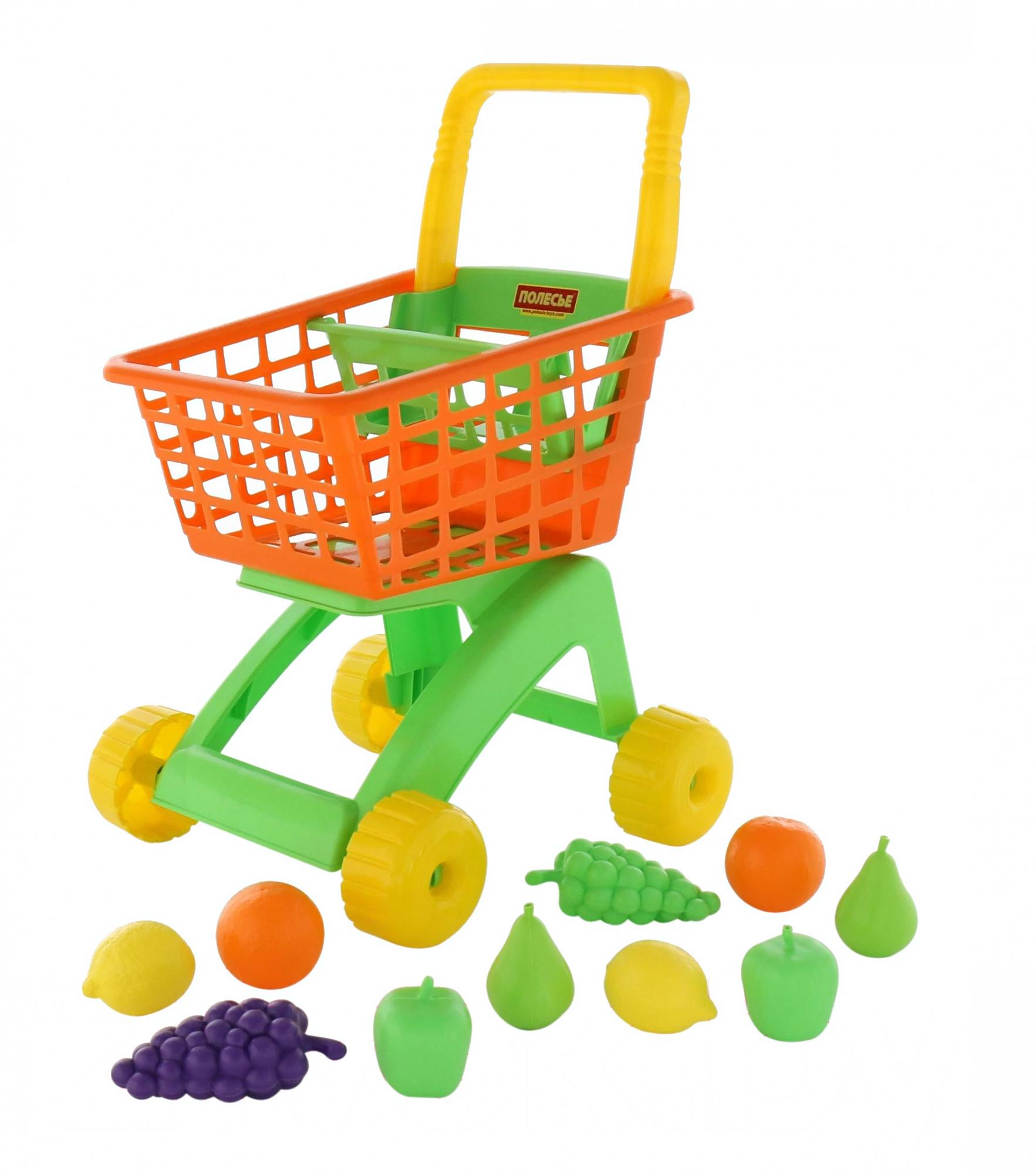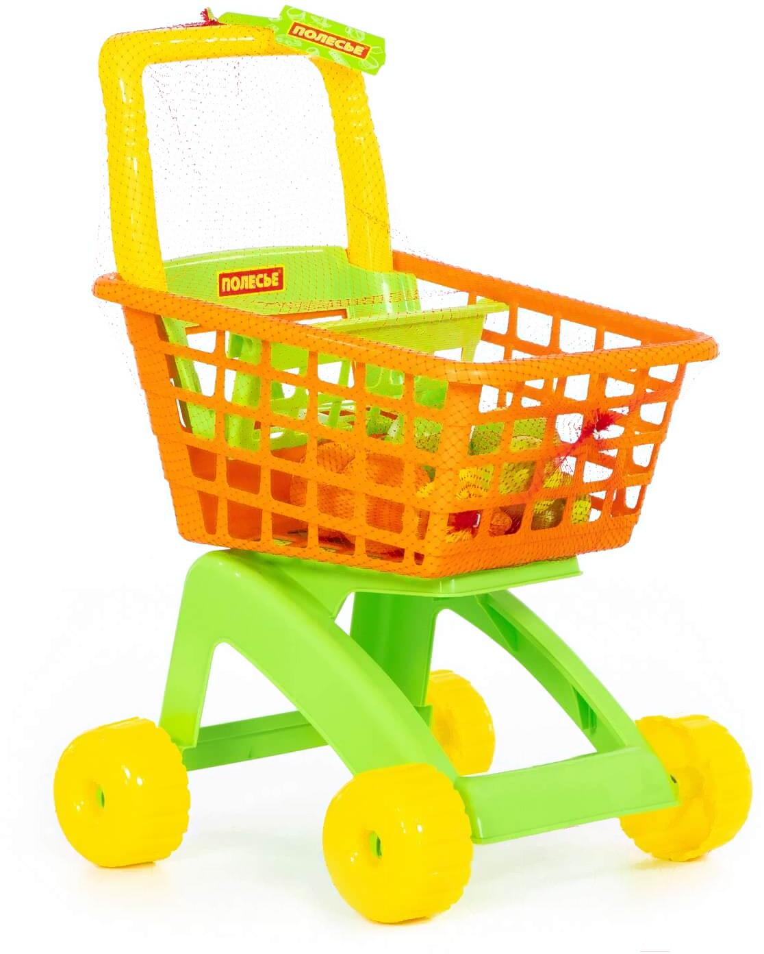 Тележка игрушечная Полесье №7 с набором продуктов / 61911 (оранжевый/салатовый)