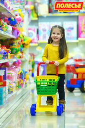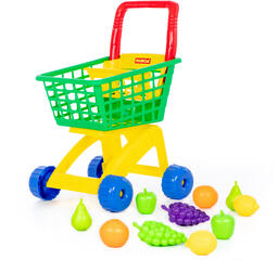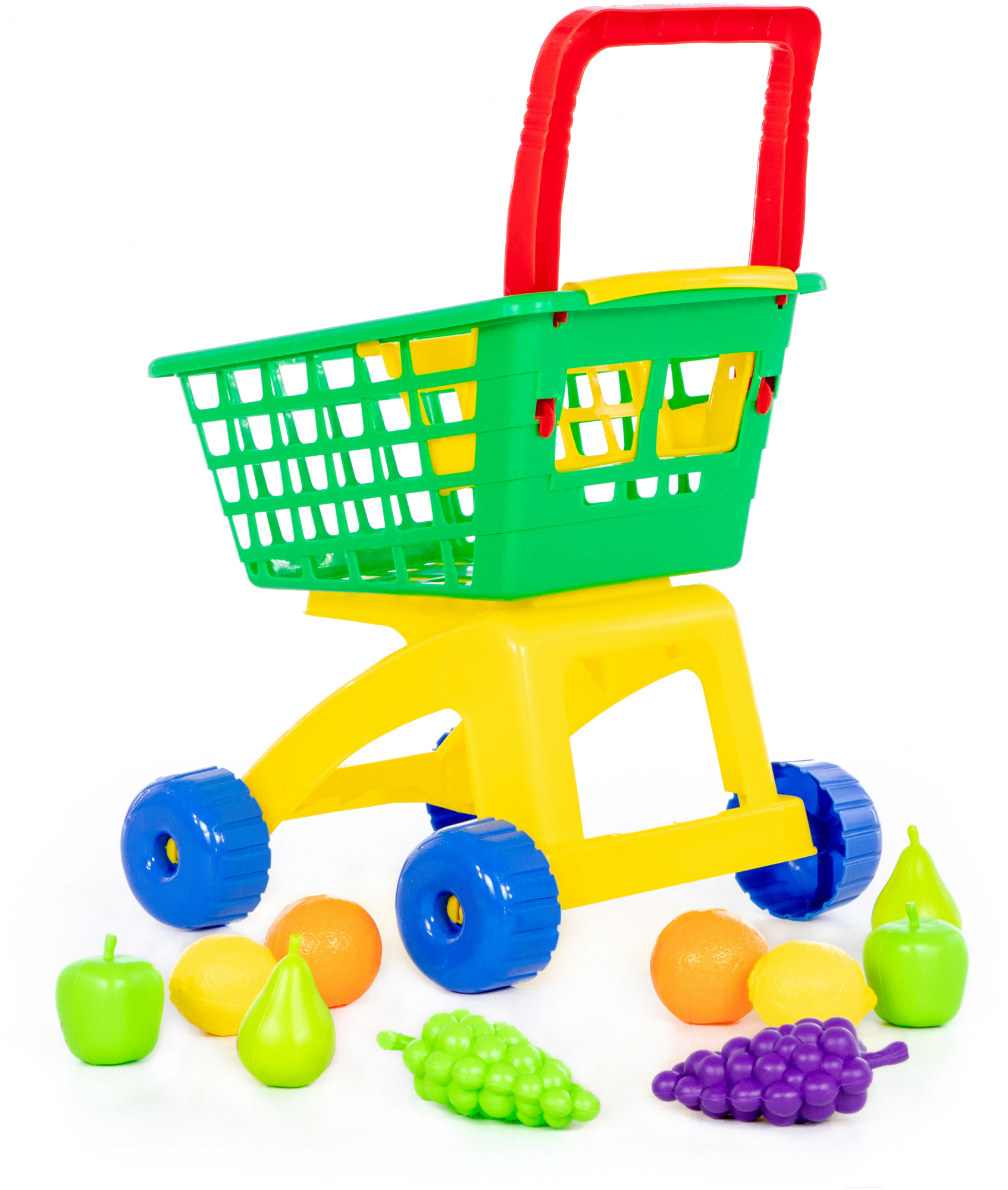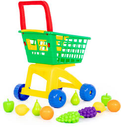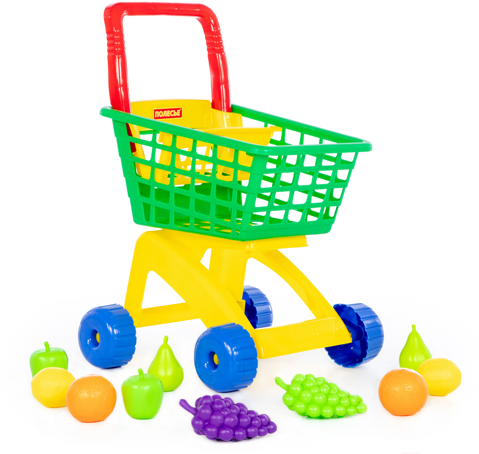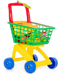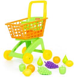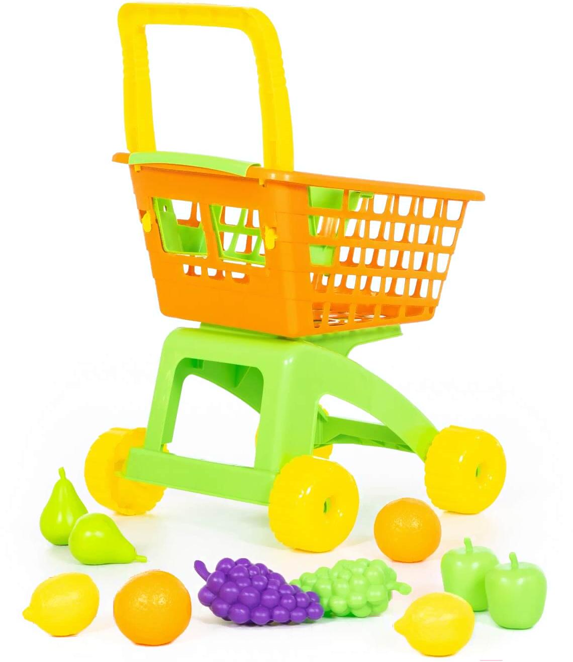 Тележка игрушечная Полесье №7 с набором продуктов / 61911 (оранжевый/салатовый)