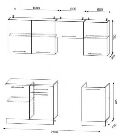 • Глубина нижних шкафов 60 см (50 см - глубина по корпусу)