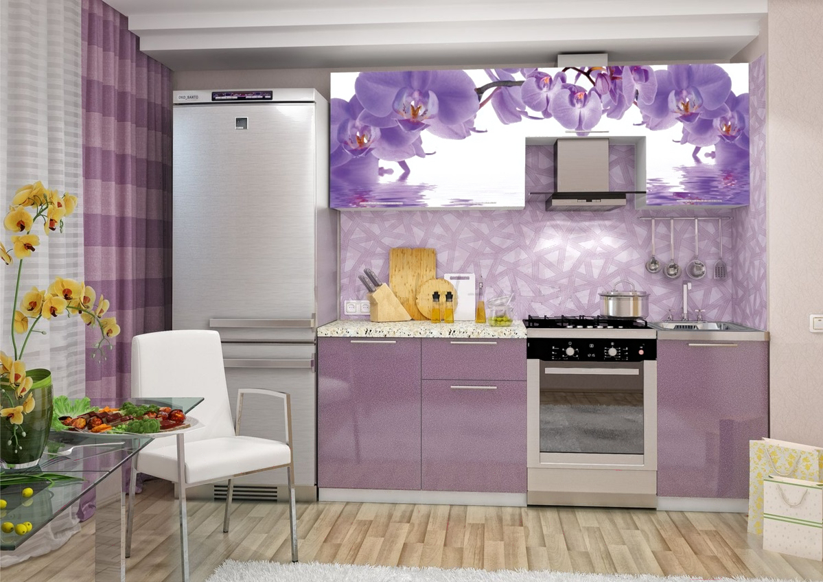 Готовая кухня Интерьер центр Орхидея 2.1 (орхидея фотопечать/сирень)