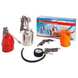 Комплектациякраскораспылитель с нижним бачком SGB1,5Q объемом 1 л., пистолет для подкачки шин с манометром TG35Q, моющий пистолет с регулируемым соплом WG1000Q, пистолет продувочный BG30Q, шланг спиральный SHQ6 5 м.