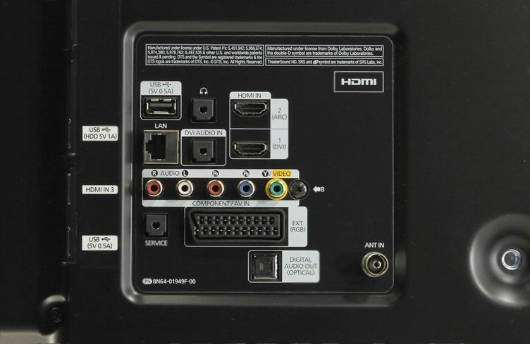 • Входы AV, 3 x HDMI, RJ-45, SCART, 3 x USB, компонентный