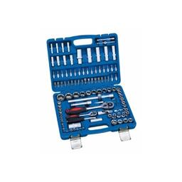 - Головки торцевые подробно 1/4": 4, 4.5, 5, 5.5, 6, 7, 8, 9, 10, 11, 12, 13, 14 мм; длинные 1/4": 6, 7, 8, 9, 10, 11, 12, 13 мм; Torx 1/4": E4, E5, E6, E7, E8; трещотка 1/4": 24 зуба; удлинитель 1/4": 50, 75 мм; вороток т-образный 1/4": 115 мм; с битами 1/4": T8, T10, T15, T20, T25, T27, T30, H3, H4, H5, H6, SL4, SL5.5, SL6.5, PH1, PH2, PZ1, PZ2; карданный шарнир 1/4"; 1/2": 10, 11, 12, 13, 14, 15, 16, 17, 18, 19, 20, 21, 22, 24, 27, 30, 32 мм; удлинитель 1/2": 125, 250 мм; длинные 1/2": 14, 15, 17, 19 мм; свечные 1/2": 16, 21 мм; карданный шарнир 1/2"