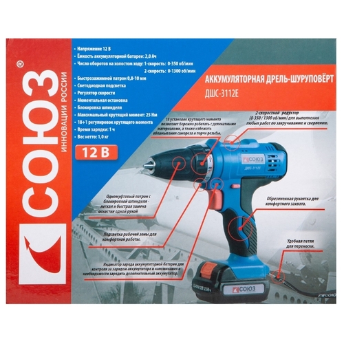 Дрель-шуруповерт СОЮЗ ДШС-3112Е