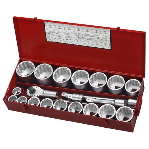- Головки торцевые подробно дюймовые 1" (12-гр): 1-7/16″, 1-1/2″, 1-5/8″, 1-11/16″, 1-3/4″, 1-13/16″, 1-7/8″, 2″, 2-1/8″, 2-3/16″, 2-1/4″, 2-3/8″, 2-1/2″, 2-5/8″, 2-3/4″, 2-15/16″, 3-1/8″; трещоточкая головка 1"; рукоять 1": 550 мм; удлинитель 1": 200, 400 мм; адаптер для т-образного воротка
