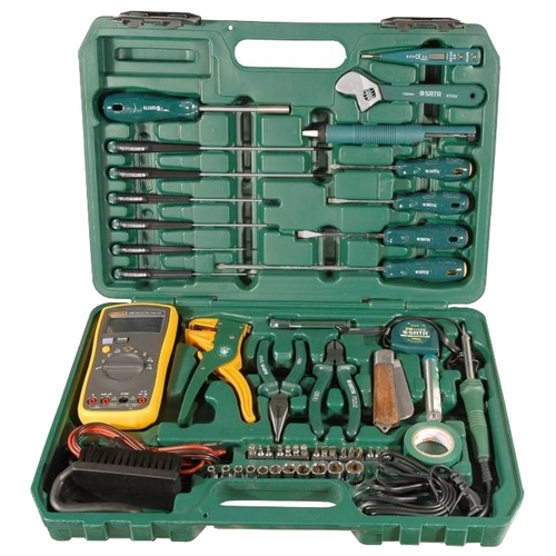 - Инструменты в комплекте отвёртки, рукоять для бит, пассатижи, кусачки, отвёртки для точных работ, ключ разводной