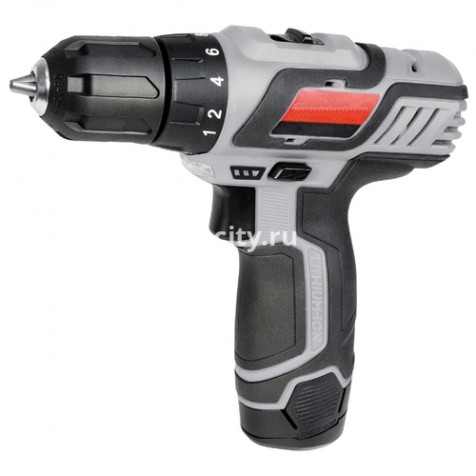 - Подробная комплектация один аккумулятор, зарядное устройство, комплект сверл и бит, кейс