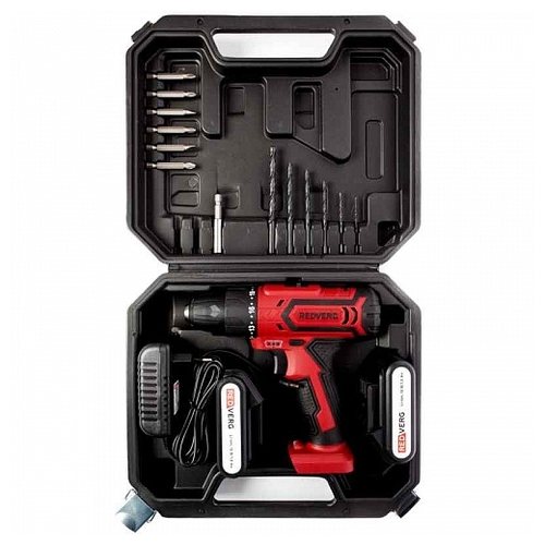 - Подробная комплектация два аккумулятора, зарядное устройство, комплект сверл и бит, кейс