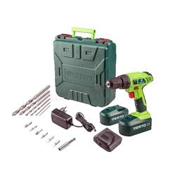 - Подробная комплектация два аккумулятора, зарядное устройство, набор сверл и бит, кейс