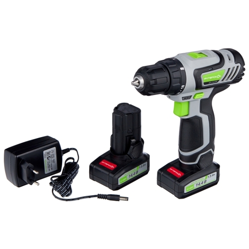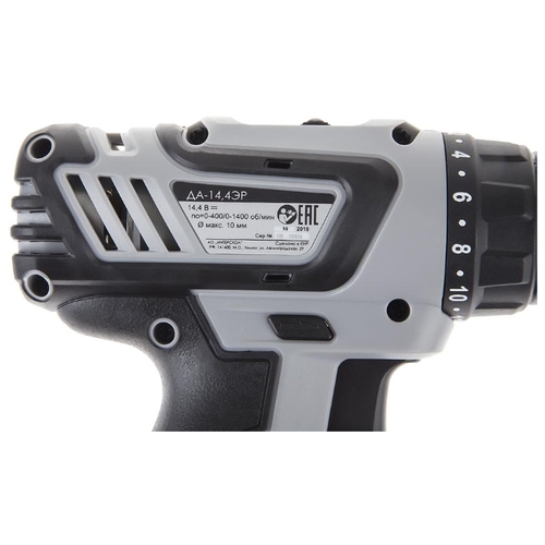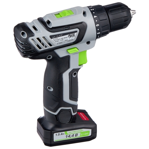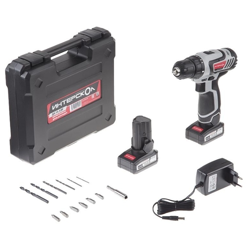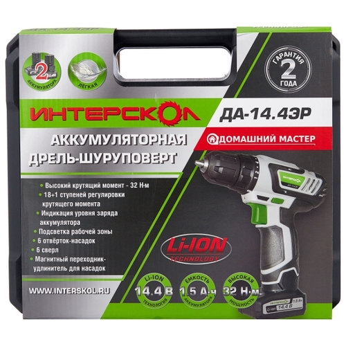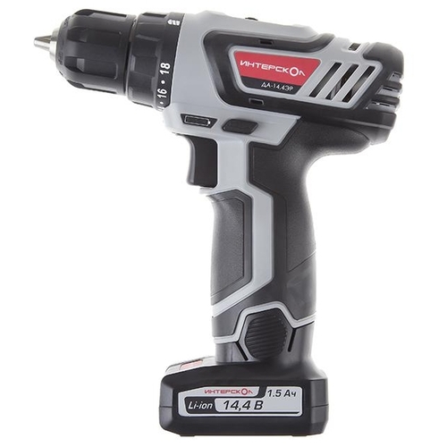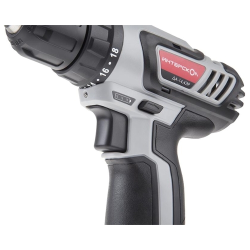 Аккумуляторная дрель-шуруповерт Интерскол ДА-14,4ЭР 596 Li-Ion 1.5 А·ч 14.4 В х2 кейс 32 Н·м серый/черный/зеленый