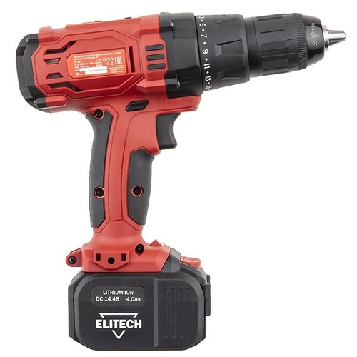 Аккумуляторная дрель-шуруповерт ELITECH ДА 14СЛ2 Li-Ion 4.0 А-ч 14.4 В x2 кейс 38 Н·м