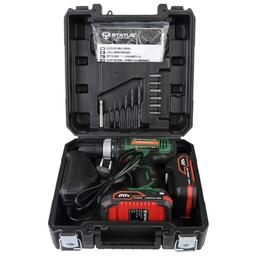 - Подробная комплектация два аккумулятора, зарядное устройство, набор сверл и бит, кейс