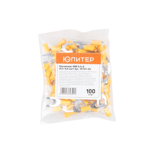 Наконечник Юпитер НВИ 6,0-8 вилка (4,0 - 6,0 мм2) 100 шт JP7211-03