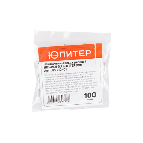 Наконечник-гильза Юпитер двойной НШвИ(2) 0,75-8 TE7508 100 шт JP7210-01