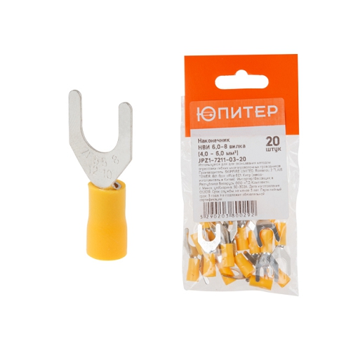 Наконечник Юпитер НВИ 6,0-8 вилка (4,0 - 6,0 мм2) 20 шт JPZ1-7211-03-20