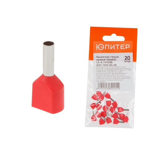 Наконечник-гильза двойной Юпитер НШвИ(2) 1,5-8 (TE1508) 20 шт JPZ1-7210-02-20